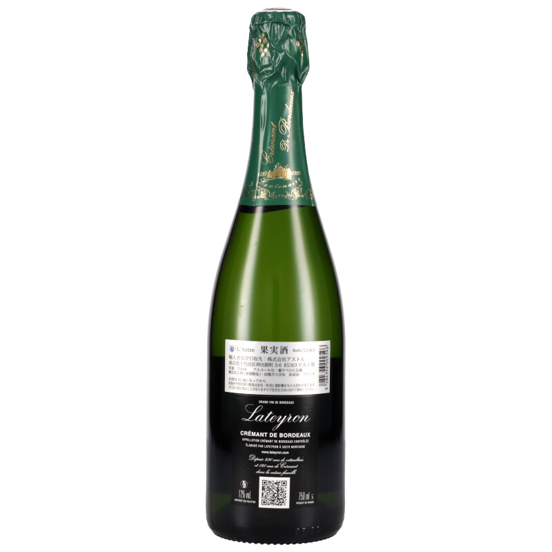 クレマン・ド・ボルドーの代表的生産者ラテイロン家。柑橘系のフレーバーと丸みのある辛口。AOC規定を大幅に上回る24ヶ月の瓶熟成。