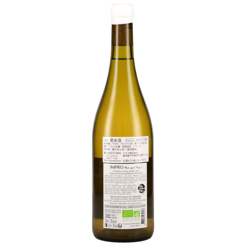 淡い黄金色。花のアロマが鼻に抜け、フレッシュな塩味が口に広がる。アタックはとても優しく、余韻が心地よい。
