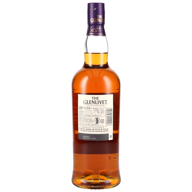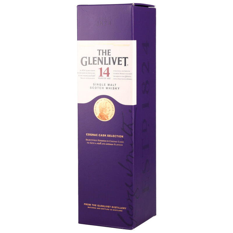 ブレンドの一部のフィニッシュに厳選した高品質なコニャックカスクを使用した、主要なシングルモルトブランドのウイスキーには珍しい商品です。バーボン樽、シェリー樽で14年間熟成させたブレンドの一部をコニャックを熟成した高品質な樽で6ヶ月間以上寝かせたウイスキーで、ザ・グレンリベット本来のスムースでフルーティーな味わいそのものとコニャックカスクがもたらす味わいをバランスよく調和させました。