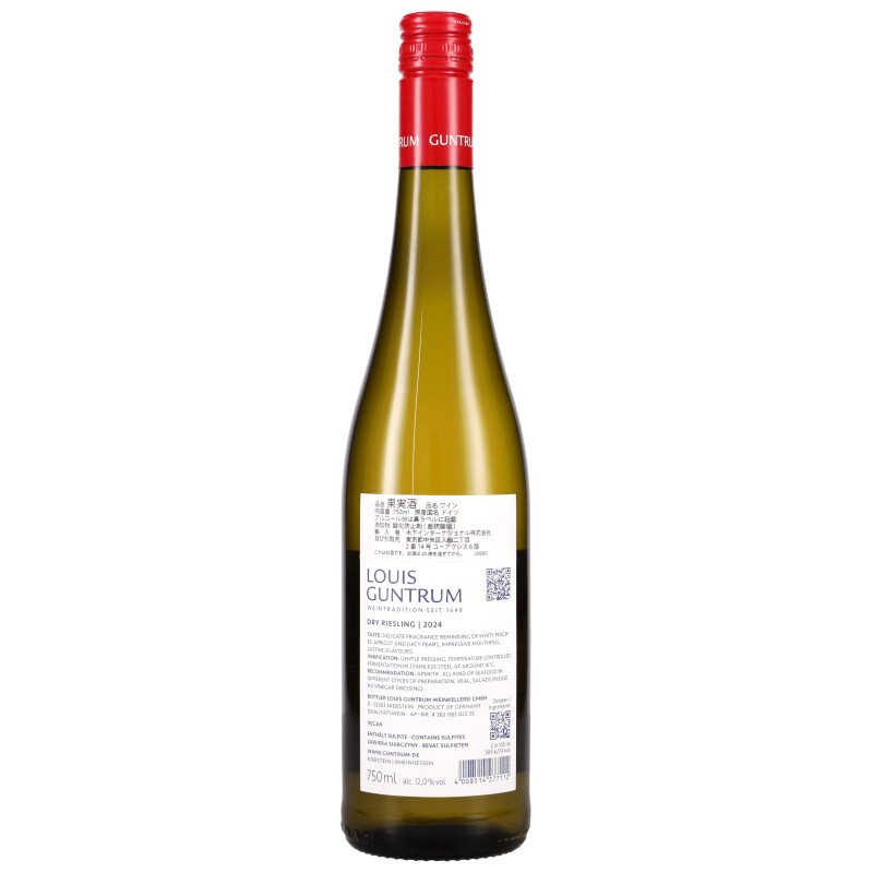 白桃やアプリコット、ジューシーな洋ナシの繊細な香り。クラシックなリースリングのエレガントさを表現。しっかりしたミネラル感も感じられ、前菜や様々なタイプの魚介料理、ヴィネガードレッシング以外のサラダに合います。